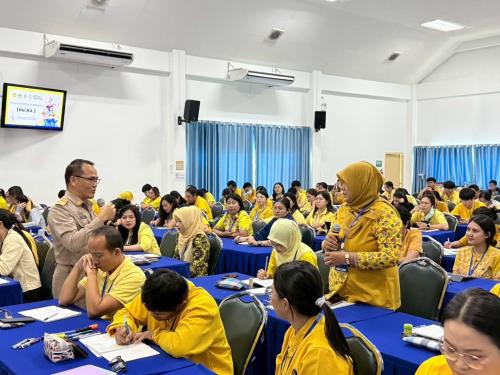 พร้อมด้วย นายอาทิตย์ สุโยธา นักวิชาการพัฒนาชุมชนชำนาญการ นายพิษณุ บวรเกียรติ์สกุล นักวิชาการพัฒนาชุมชนปฏิบัติการ และ นายเรืองวิชญ์ นวลโคกสูง นักวิชาการพัฒนาชุมชนปฏิบัติการ ทีมงานขับเคลื่อนการดำเนินงานฝึกอบรมเมล็ดพันธ์ุข้าราชการใหม่ หัวใจนักพัฒนา โครงการพัฒนาข้าราชการที่อยู่ระหว่างทดลองปฏิบัติหน้าที่ราชการ พัฒนากรก่อนประจำการ รุ่นที่ 132 จำนวน 112 คน ณ วิทยาลัยการพัฒนาชุมชน อ. บางละมุง จ.ชลบุรี